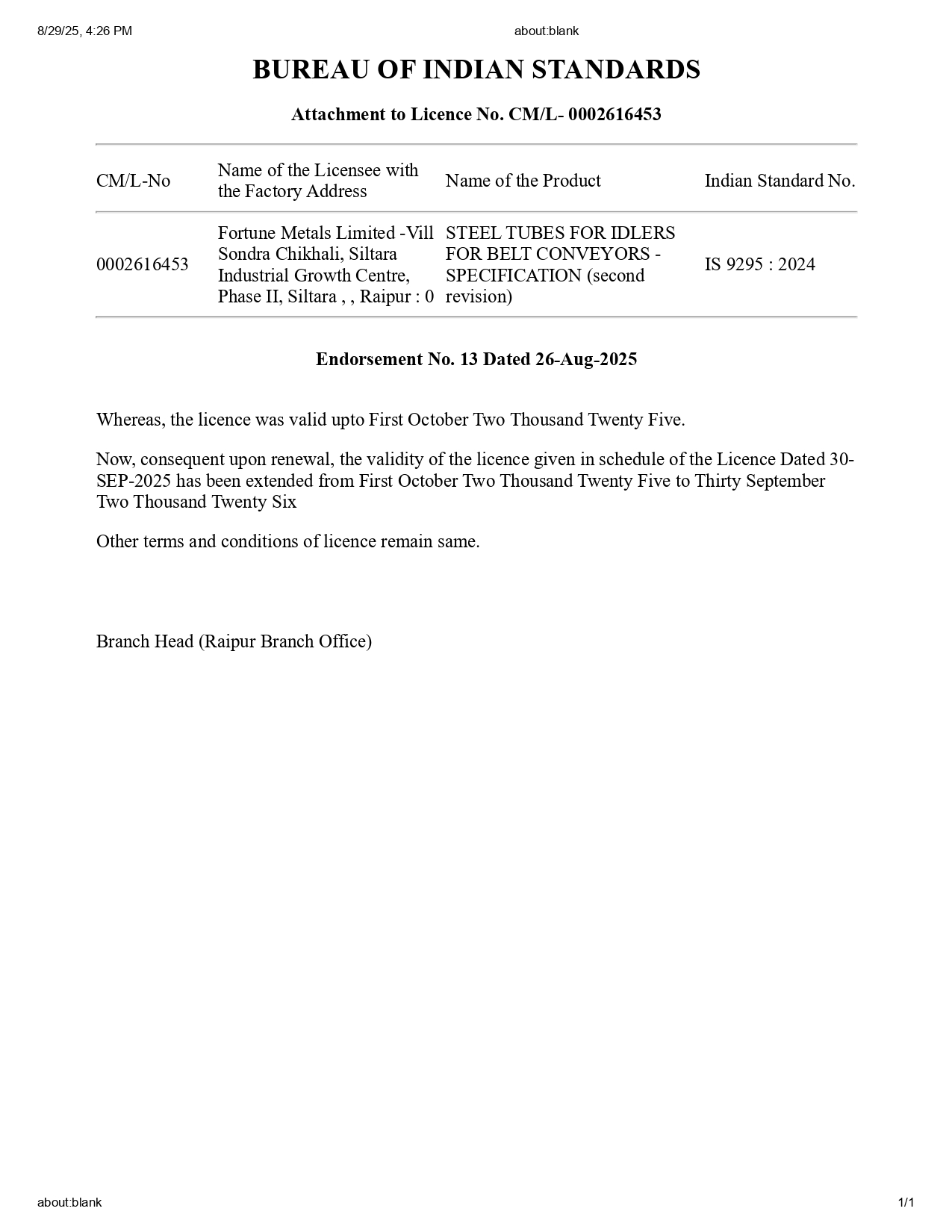 Renewal IS 9295