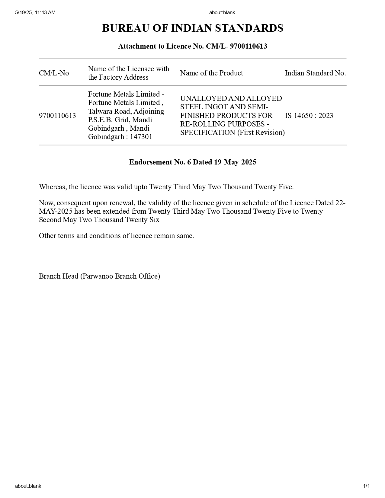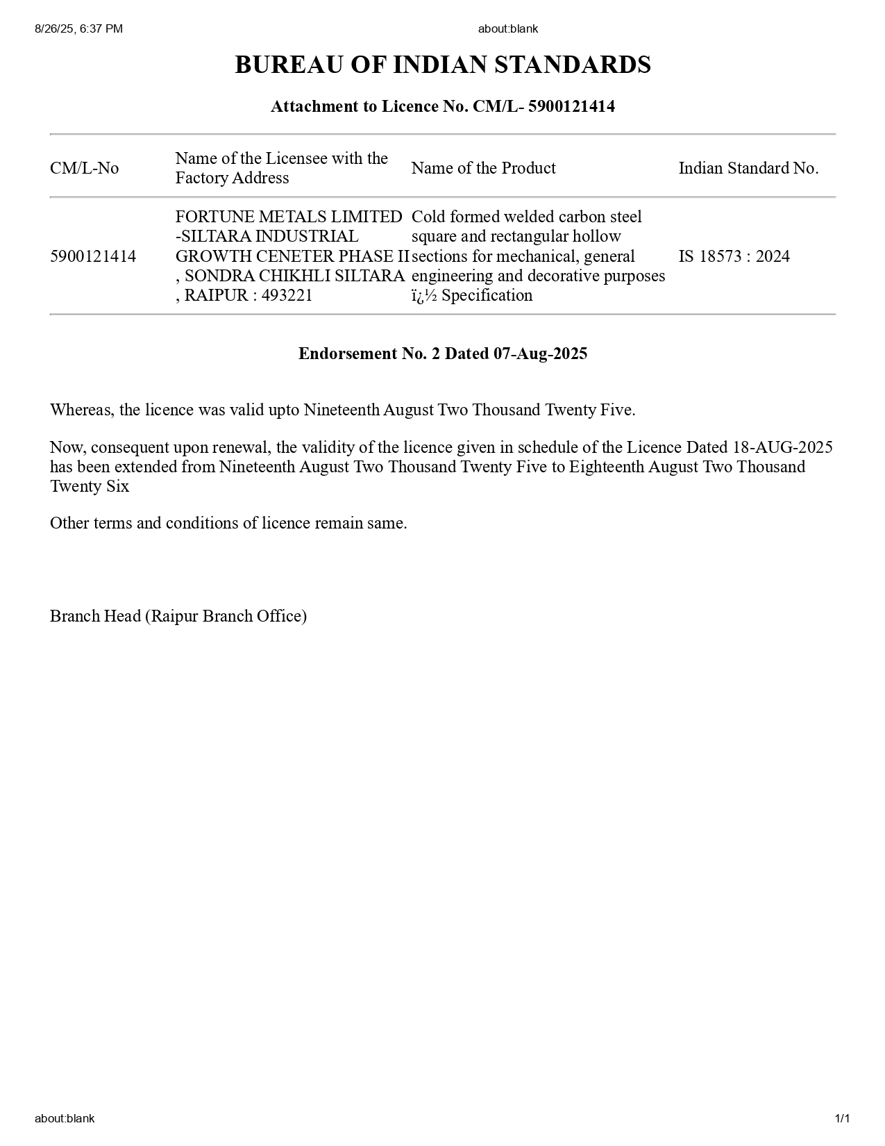 Renewal IS 18573