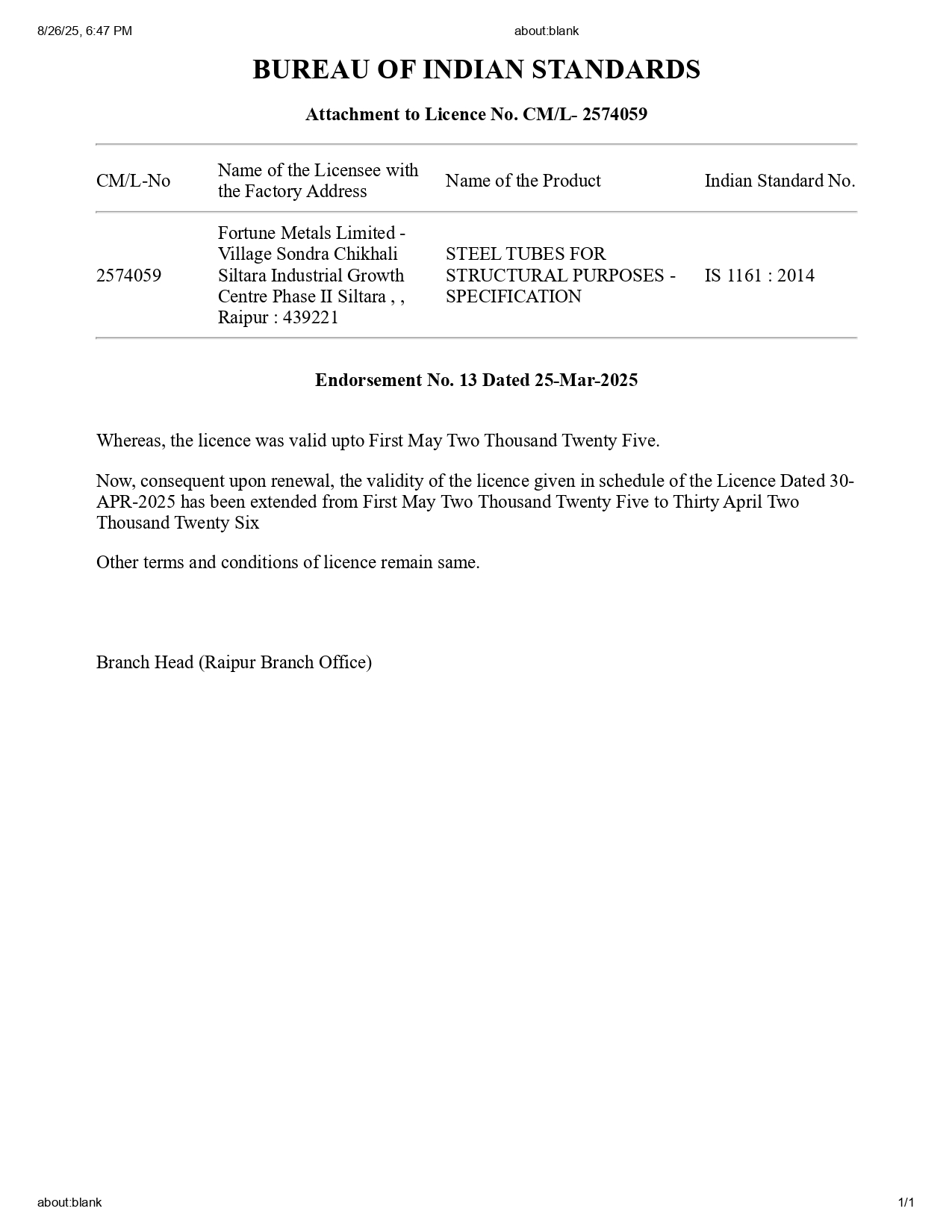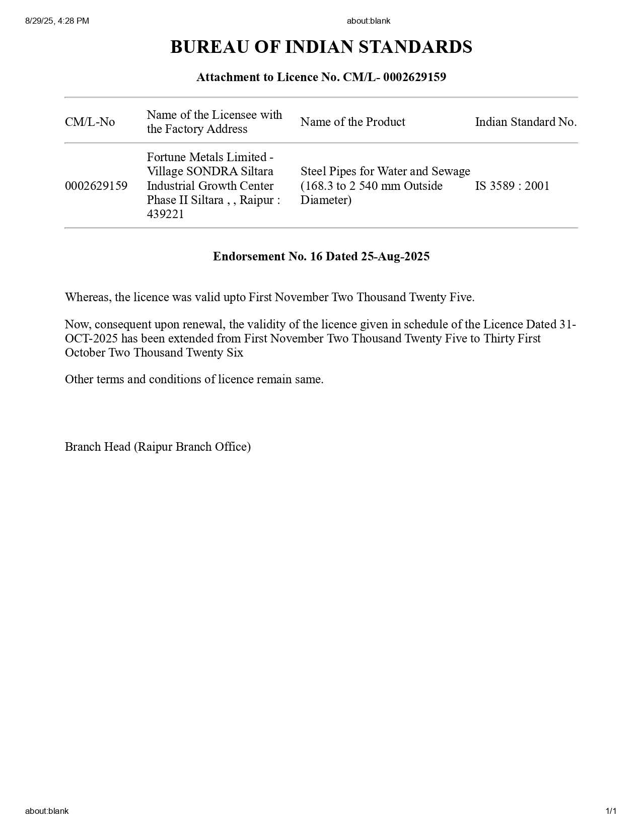 Renewal IS 1161