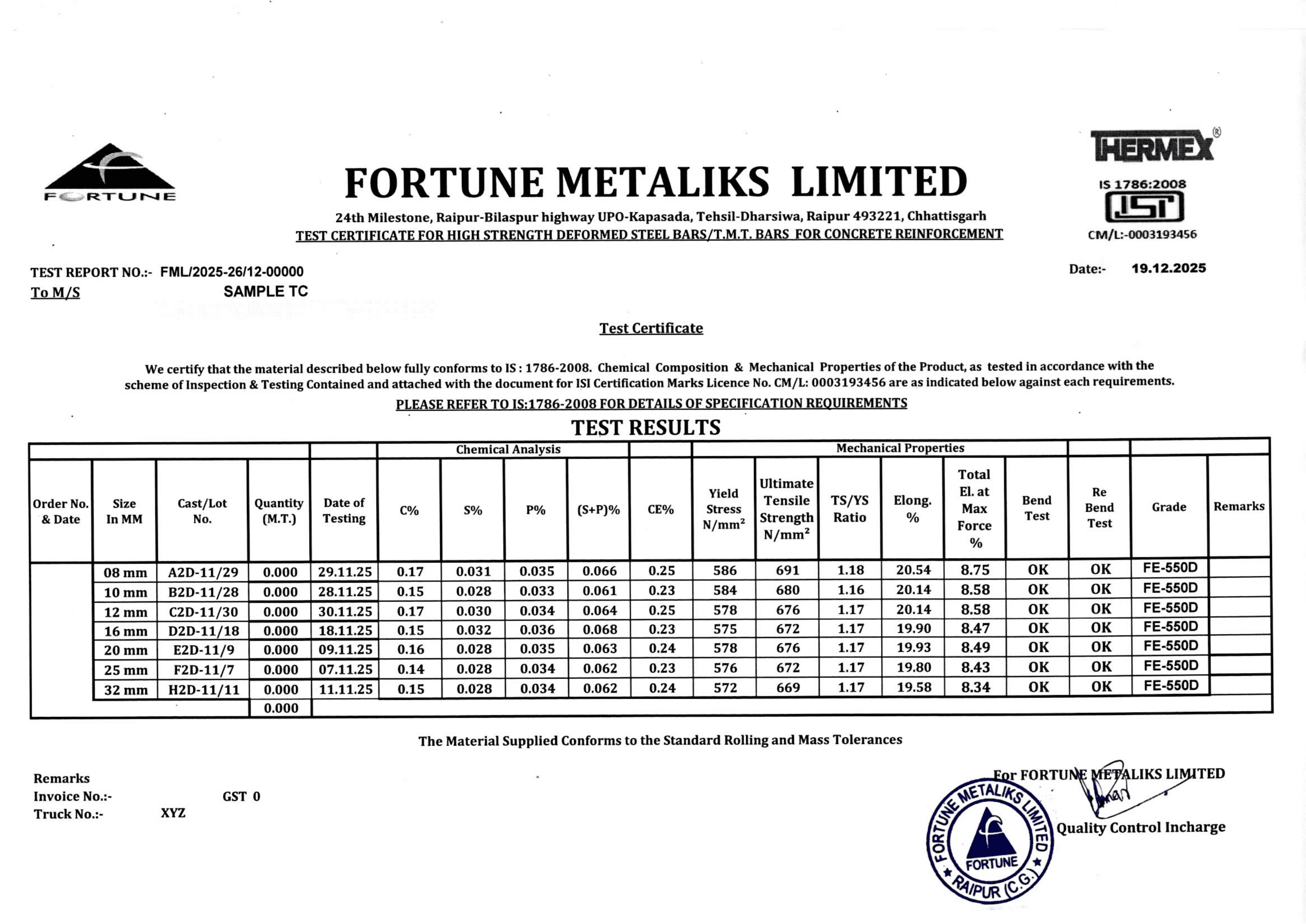 Test Certificate 550D
